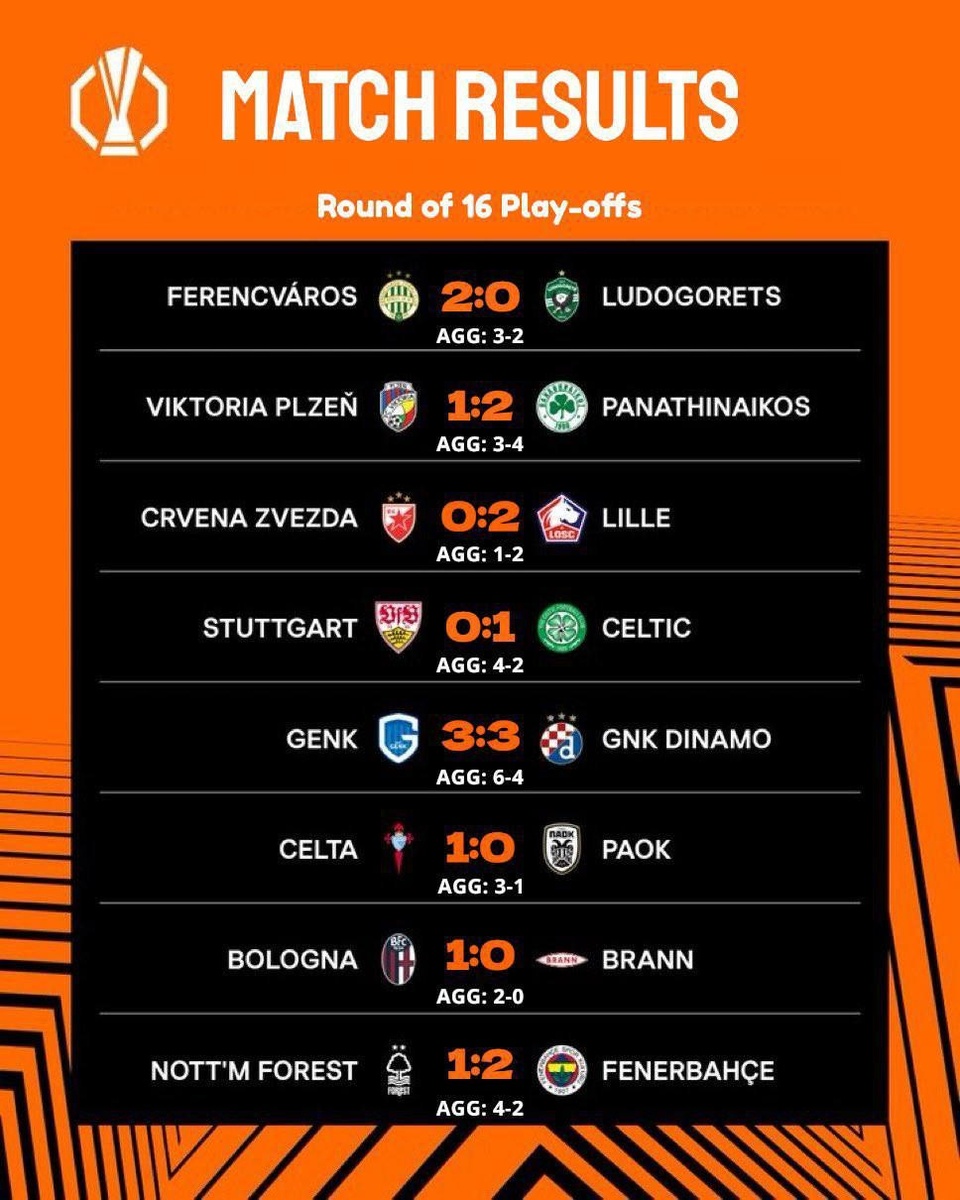🏆 Все результаты ответных стыковых матчей Лиги Европы и Лиги конференций