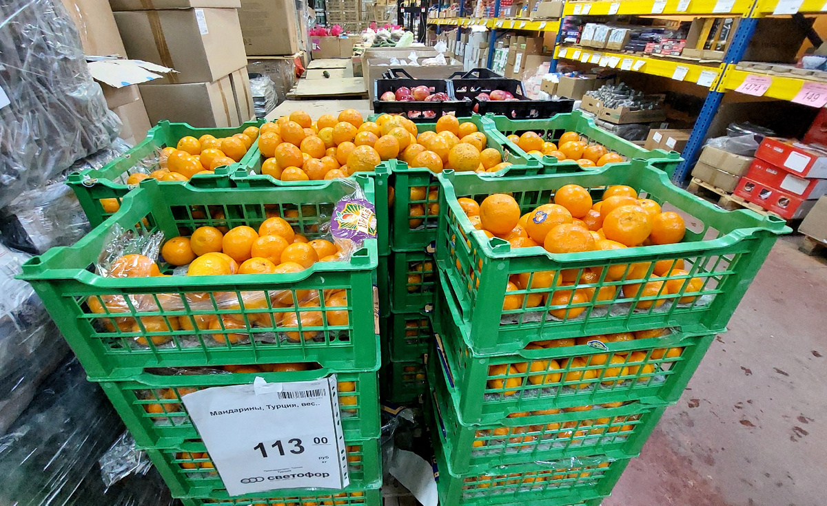Приятно по приходу в Светофор, встречать здесь на фруктовом развале свежие фрукты. На улице минус 20 градусов, а в торговом зале магазина ароматы южных фруктов. Из солнечной Турции поступили мандарины. Все плоды, как на подбор, одинакового размера. Оранжевый цвет и блестящая кожура привлекает к себе внимание. Цена 113 рублей за кг.