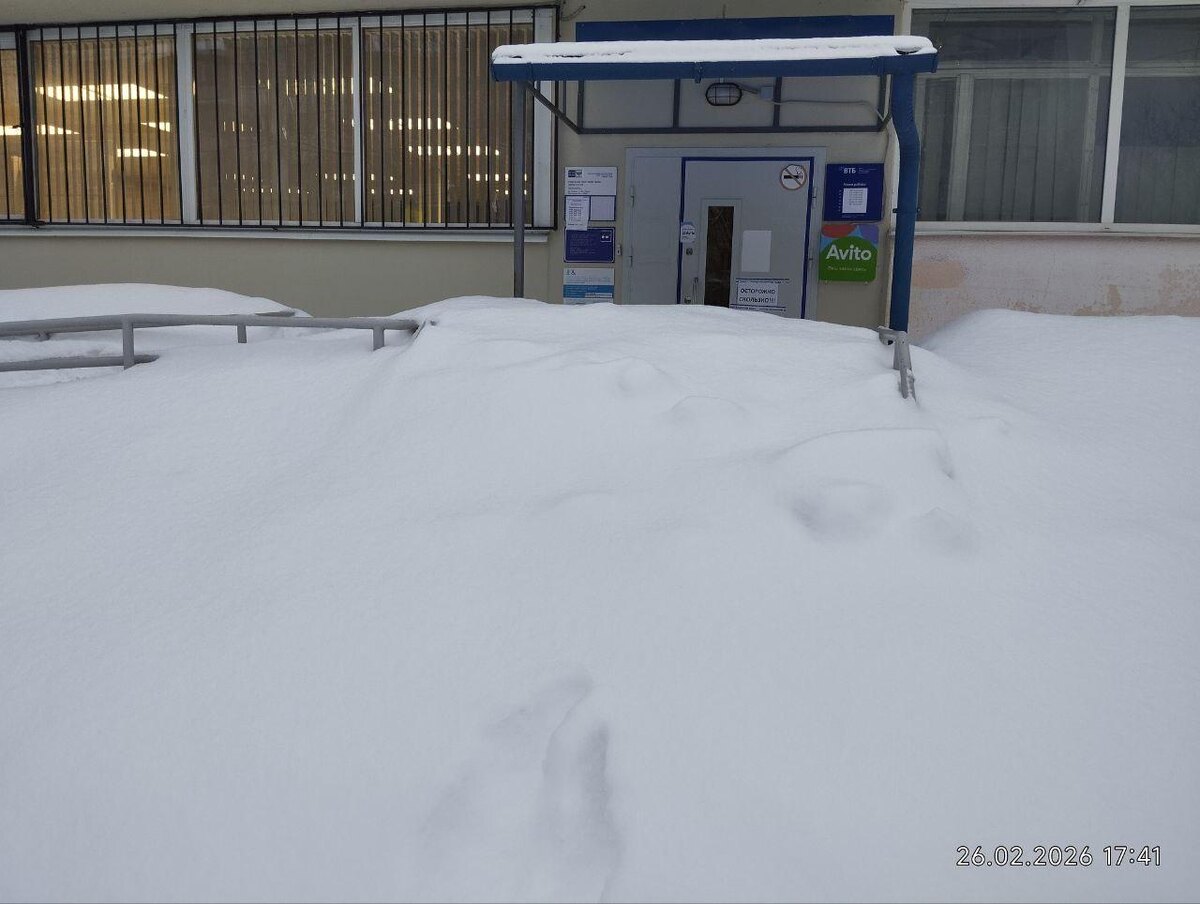 📩📤📥📨✉️ В Чехове “Почта России” вообще не заморачивается уборкой снега - посетители сами протаптывают дорожки “Почта России” на улице Гагарина, 106. Первое фото - вид летом, 2 и 3 - 26 февраля. Было очень нужно мне туда попасть. Вместо крыльца и ступенек - огромный сугроб. Сбоку тропка вроде как по пандусу, но ее начало почти на уровне перил. Сделать шаг на такую высоту я не смогла. Пришлось заползать на коленях. На мой вопрос о том, почему никто не чистит входную зону, молоденькая сотрудница ответила, что это не входит в ее обязанности. С трудом сползла на пятой точке с этой тропки на дорогу, матерясь шепотом. А в чьи обязанности это входит?