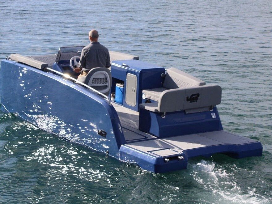 Итальянская компания-разработчик аддитивного оборудования Caracol и испанское судостроительное предприятие V2 Group создали шестиметровый моторный катамаран с помощью роботизированного 3D-принтера Heron, печатающего полимерными композитами. Корпус катера изготовлен за один производственный цикл как цельная, монолитная конструкция. Расходным материалом послужил композит из вторичного сырья на основе переработанного полипропилена со стекловолоконными армированием. Авторы рассматривают возможность масштабирования технологии в сторону производства с акцентом на кастомизацию по требованиям заказчиков вместо изготовления дешевых, но однотипных плавучих средств. Опытный проект направлен среди прочего на изучение поведения материала, оптимизацию проектирования, проведение гидростатического анализа, отработку методов механической постобработки на станках с ЧПУ и нанесения защитных покрытий. 3D-печать цельного корпуса заняла сто шестьдесят часов, в длину изделие достигает шести метров. Производс
