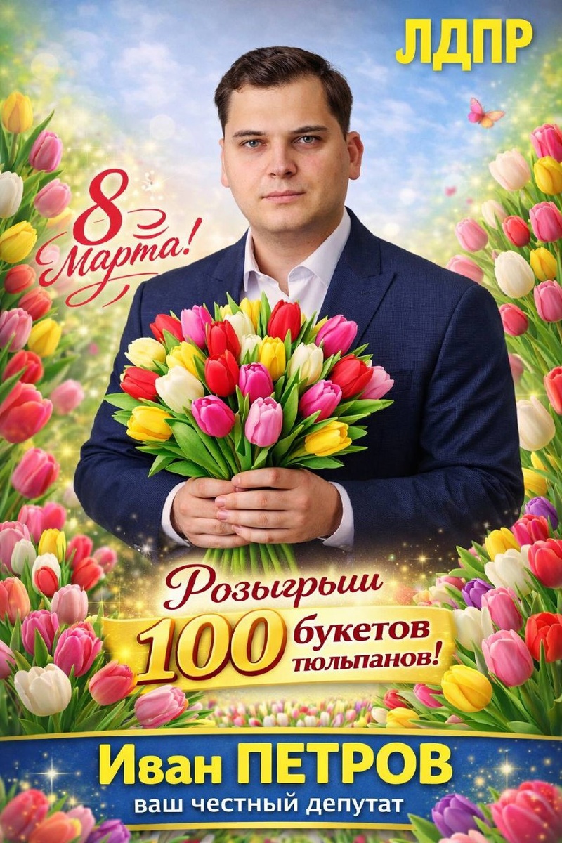 ! В честь Международного женского дня, объявляем розыгрыш 100 БУКЕТОВ тюльпанов! Участвовать могут как женщины, так и мужчины, чтобы порадовать своих родных и близких. 🌷 Дорогие женщины — вы источник вдохновения, красоты и гармонии. Пусть каждый ваш день будет насыщен любовью, заботой и вниманием близких. А наша партия ЛДПР наполнит ваш дом запахом весны и тюльпанов! ✅ Условия участия в ТГ: - Подписаться на этот канал @Petrov_LDPR; - Оставить реакцию на этот пост; - Отметь друга в комментариях. ❗️ Итоги розыгрыша подведём вечером 6 марта. Букеты вы можете сможете забрать лично 7 марта с 12:00 до 14:00 в приёмной ЛДПР на Красрабе, 71. Только в это время! Призы не отправляем! 🔝 Увеличить свои шансы на победу можно отметив нескольких друзей — один друг = один комментарий, а также приняв участие во всех моих соцсетях: ВК, ОК, ТГ, Тик-Ток, YouTube и в MAX 🫶 Всем удачи и весеннего настроения!