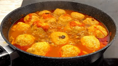 - Долить воду так, чтобы тефтели были закрыты. Посолить, поперчить, добавить чеснок и любые другие специи по вкусу.