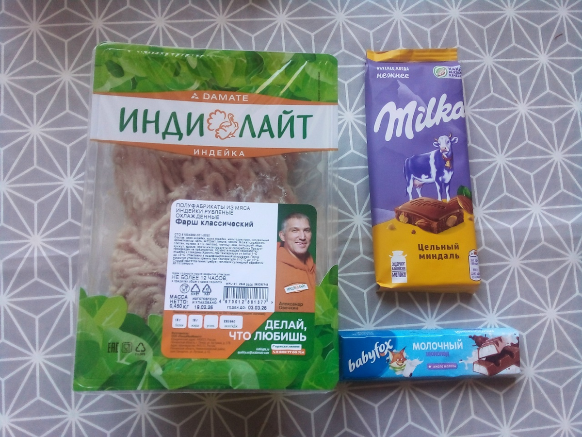 В "Магните" совместила купон 30% на фарш и бонусы. Получился фарш за 60 рублей, Милка за 44 и Бэби фокс за