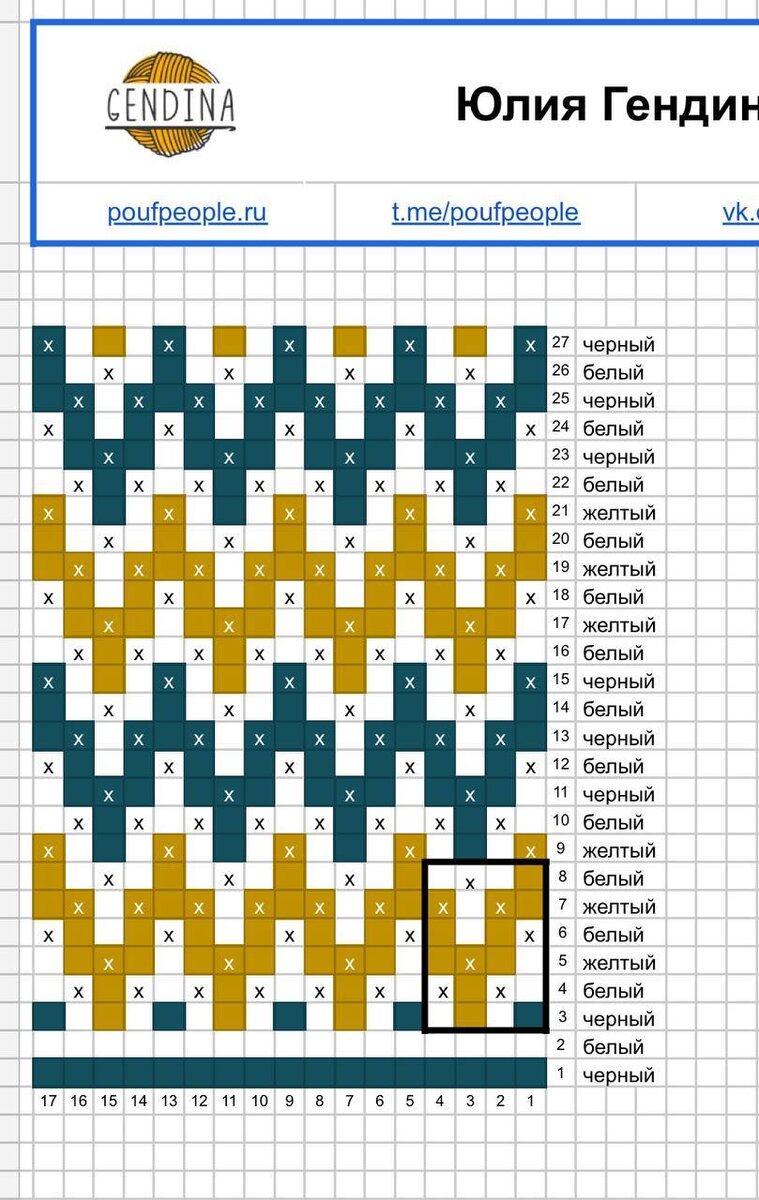 Сохраните себе эту схему — здесь справа я сделала обозначения по цветам, чтобы было понятно, в каком ряду какой цвет брать. С этим часто возникают вопросы.