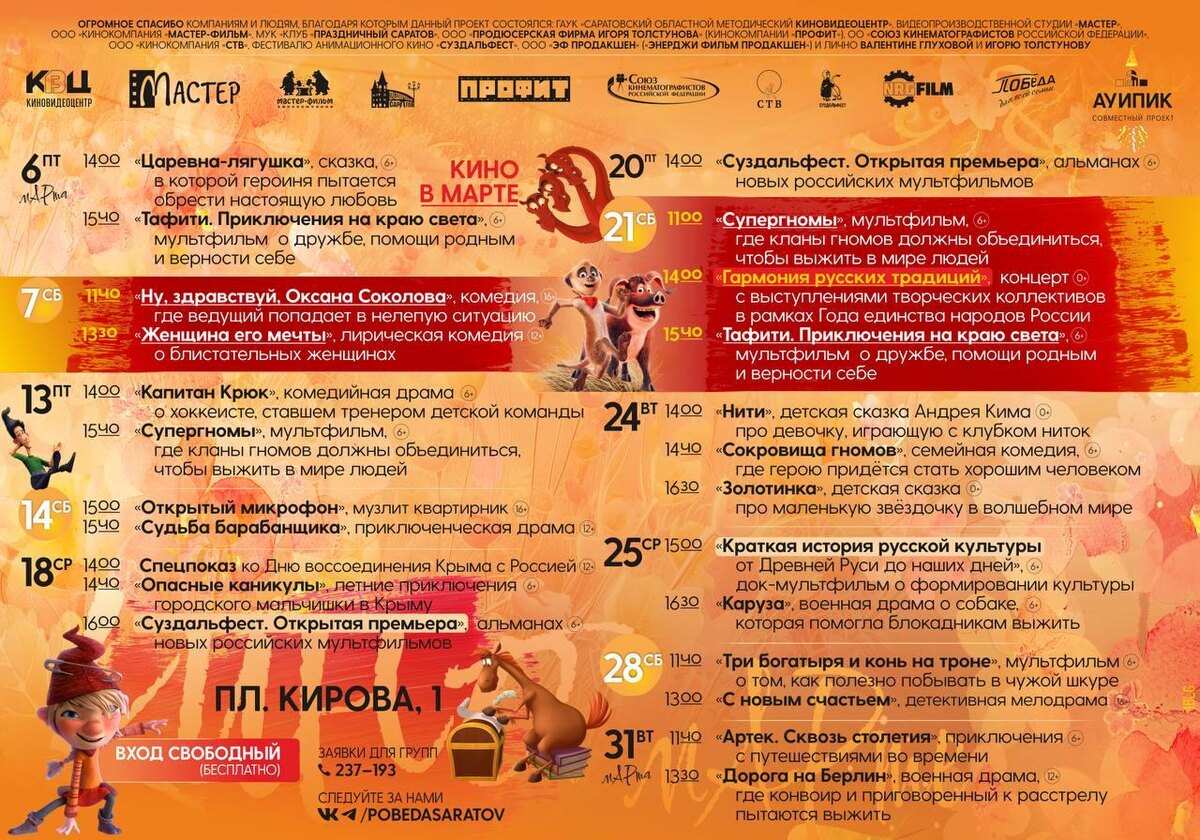Кинотеатр «Победа» опубликовал расписание показов на март