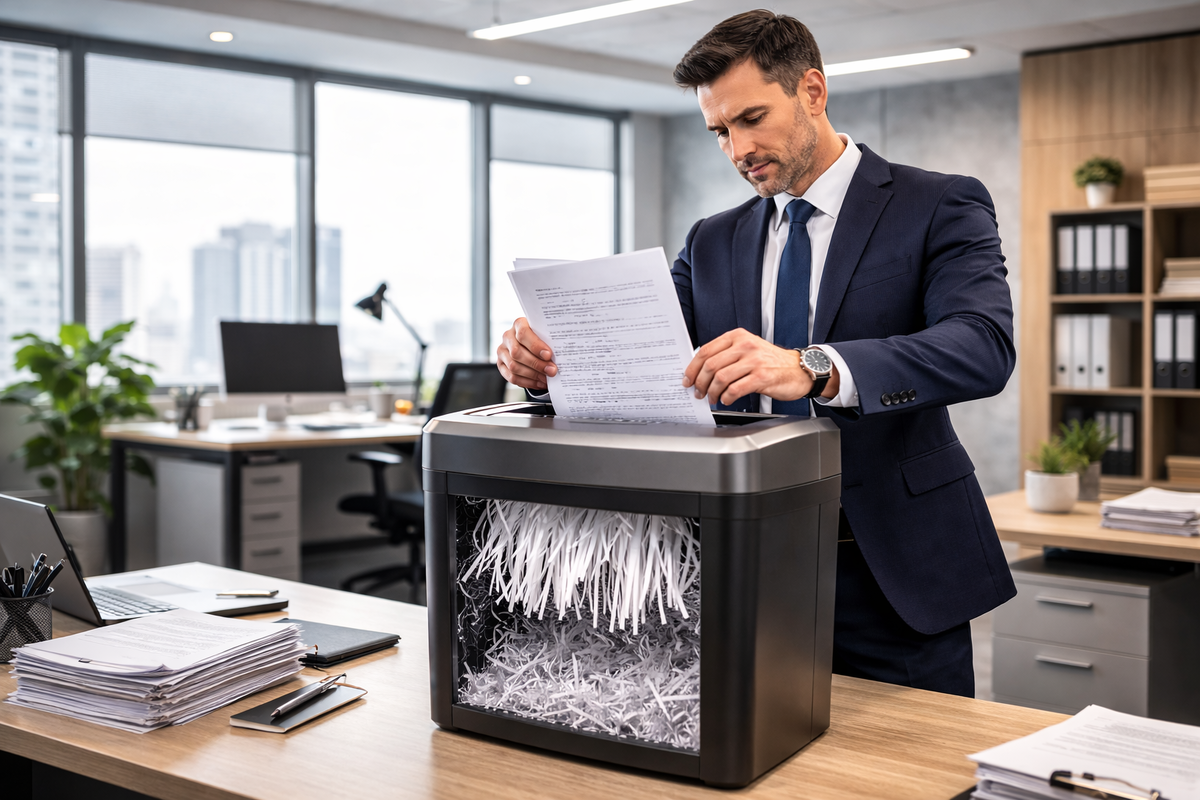 Шредер с поперечным разрезом (cross-cut) — ваш друг. Если документов много — привлеките специализированную компанию, но обязательно контролируйте процесс лично