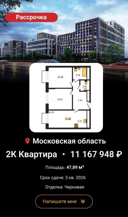 ▪️Первоначальный взнос — 10% во всех корп. 📌 Также доступны лоты с отделкой WhiteBox: ▪️ корп. 10 и 12 (1-6 подъезд) — дозаказ за 12,7 тыс ₽/м². ▪️Стоимость с удорожанием — 11,8 млн ₽. ▪️Стоимость отделки — 608 тыс ₽. ▪️Срок — 18 месяцев. ▪️Первоначальный взнос — 1,2 млн ₽ (10%). ▪️Фиксированный ежемесячный платеж — 40 тыс ₽. #Публицист #DOGMA
