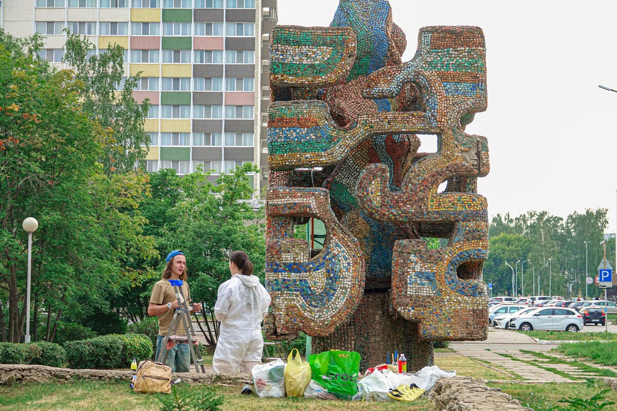 – Допустим, на общественных пространствах – сквер ЖКХ, недалеко от дельфинария. Там установлены фигуры девушки с метлой и на уровне земли из люка выглядывает сантехник. Однозначно, скульптуры Ильдара Ханова. Возьмем конкретно его скульптуру «Энергия» у Боровецкого моста. Мало кто знает, что он увидел реакцию атомного распада в журнале «Наука и жизни». И это вдохновило его на создание скульптуры. Она много лет пробыла под мостом. Ее не могли поднять, потому что не было такой техники. Посодействовал Николай Бех, генеральный директор КАМАЗа.