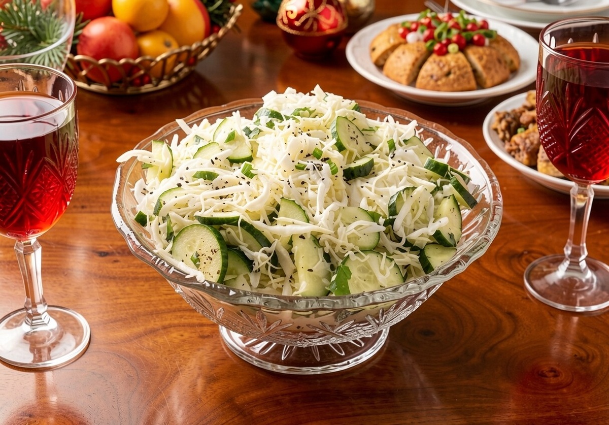 Салат из капусты и огурцов – это воплощение свежести и простоты, блюдо, которое неизменно радует своим легким вкусом и хрустящей текстурой. Всего за 15 минут вы сможете приготовить это замечательное угощение, которое идеально подойдет как для повседневного обеда, так и для праздничного стола. Его универсальность позволяет подавать его в качестве гарнира к мясным и рыбным блюдам, картофелю, или же наслаждаться им как самостоятельной легкой закуской. Благодаря тщательно подобранным ингредиентам и продуманной заправке, этот салат приобретает неповторимый аромат и сбалансированный вкус, а добавление кунжута, тмина и горчицы придает ему пикантные нотки и делает его настоящим украшением вашего стола.