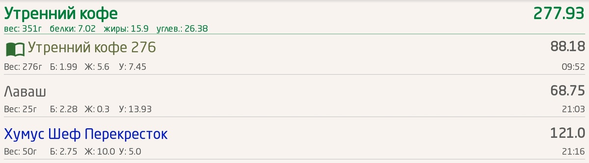 И итог по калориям: