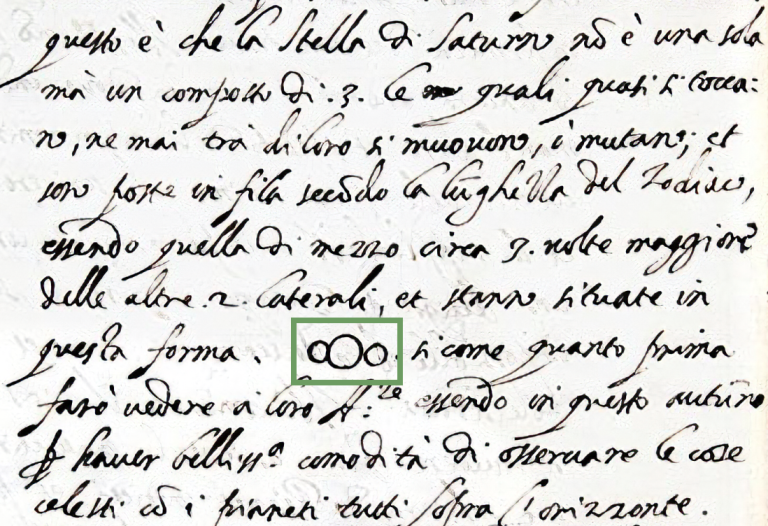 Изображение Сатурна из письма Галилео Белисарио Винте, 1610 г. brunelleschi.imss.fi.it