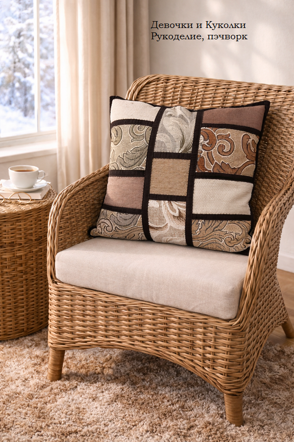 Если соседка вдруг отдала вам мебельные лоскуты, которые годами лежали у неё без дела, — это не просто «остатки ткани». Это готовый материал для стильной интерьерной вещи. Именно так и рождаются самые удачные идеи. Стоило мне взять в руки плотные мебельные кусочки разных оттенков, как сразу пришло решение: сшить наволочку на молнии на декоративную подушку в технике «витражи». Техника «витраж» в текстиле строится на принципе контраста: отдельные фрагменты ткани соединяются между собой и разделяются тёмными полосами, имитирующими свинцовые перегородки настоящего витража. В результате получается графичный, аккуратный и очень эффектный рисунок. Мебельные лоскуты для этого подходят идеально: Главный принцип — подобрать ткани так, чтобы они сочетались по цвету, но отличались по фактуре или рисунку. Тогда композиция будет живой и выразительной. Почему стоит попробовать Такая работа — это не только способ сэкономить, но и возможность: Если у вас тоже где-то лежат лоскуты, не откладывайте. Не ж
