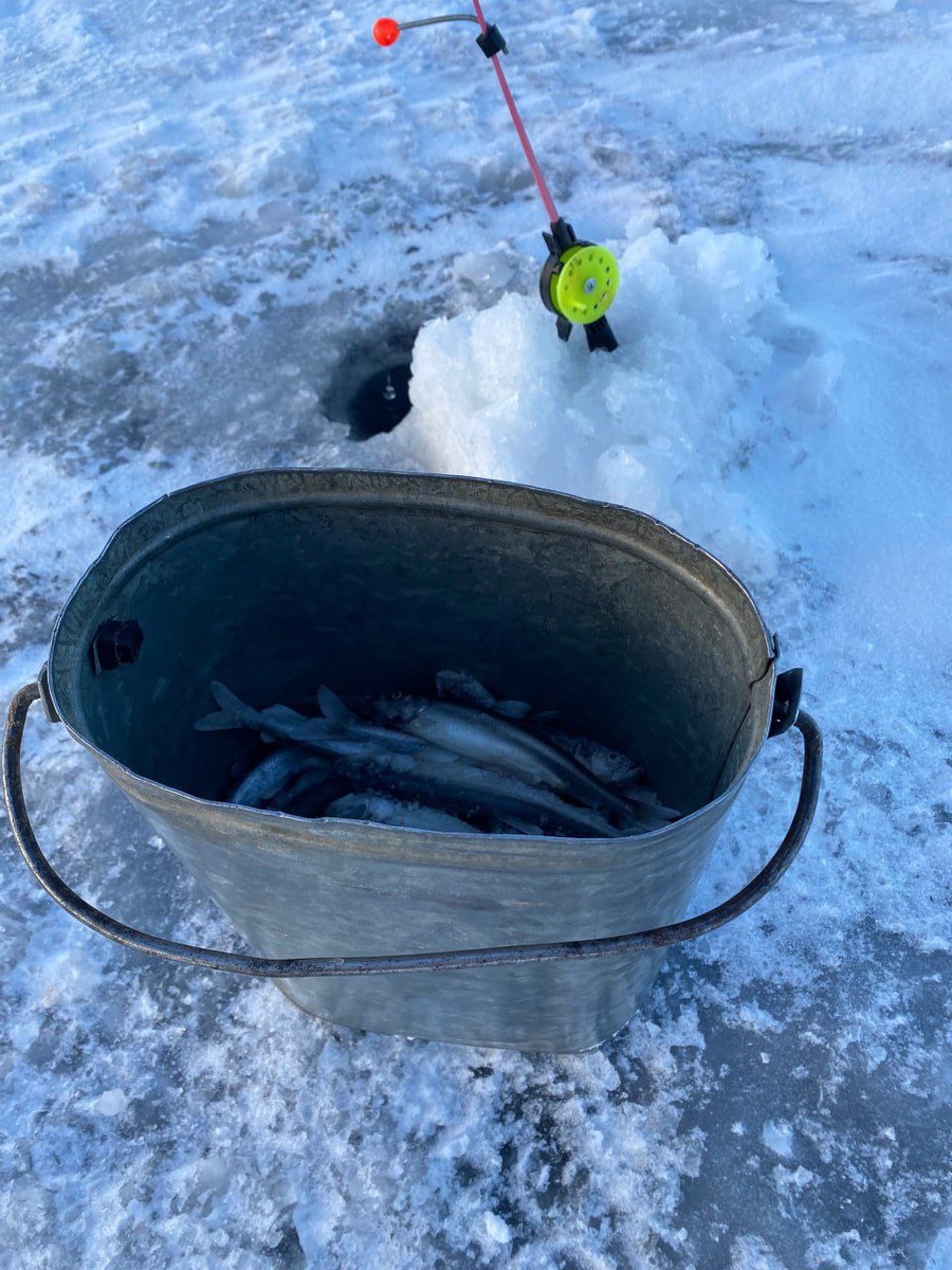 🚩 Финский залив, д. Чёрная Лахта, Ломоносовский район Ловил с 10 до 18.40. 150 м до торосов. Рядом было более 20 человек, глубина 12-13 м. Лед толще чем на шнек. Насадка: свежий карась, пойманный ерш и бельдюга. В 16.30 солнце ушло и поднялся сильный ветер. Он раздвинул трещину в километре от места ловли, в 2 км от берега, с 3 см до 15 см. Всего 82 шт, включая 2 ершей и 2 бельдюг. У соседей спереди было намного хуже. После обеда все стали собираться. К 4 часам на льду почти никого не было. Лучше всего клевало на самодельные желто-оранжевые мормышки и узкие светонакопительные блесны - самодельные и покупные.