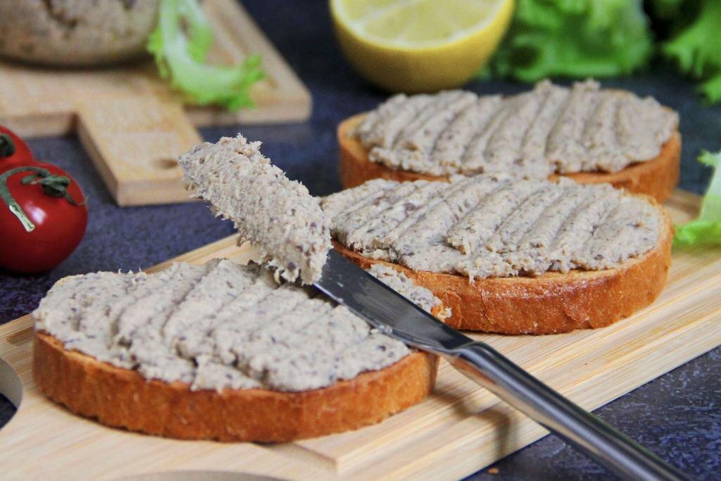 Готовый паштет переложите в удобную емкость, накройте пищевой пленкой и уберите в холодильник минимум на 1-2 часа, чтобы он настоялся и охладился. Подавайте паштет на тостах, крекерах, с кусочками свежего хлеба или как начинку для тарталеток.