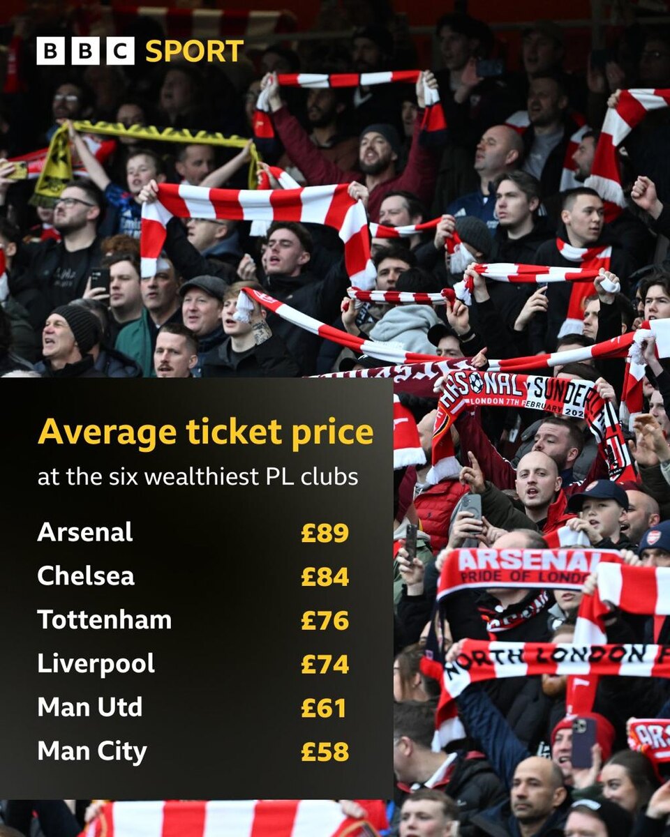 Средняя цена билета на матч в клубах "большой шестерки" Премьер-Лиги 💰