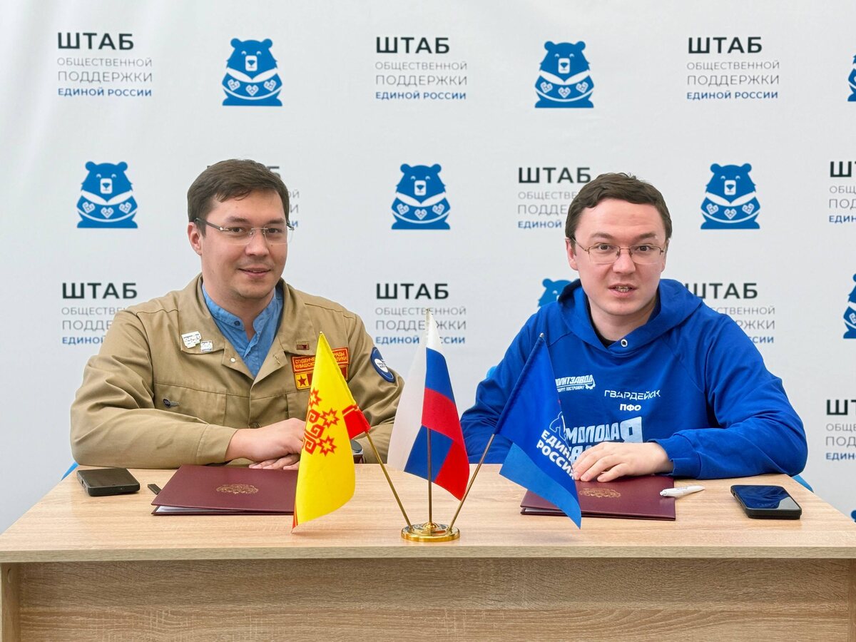 ! 📍В Штабе общественной поддержки подписали соглашение о сотрудничестве между Чувашским региональным отделением «Молодой Гвардии Единой России» и Чувашским региональным отделением «Российских студенческих отрядов». У наших друзей из студотрядов много крутых проектов, а объединив усилия, мы сможем сделать для молодёжи Чувашии ещё больше полезного — масштабировать лучшие практики, создавать новые форматы и давать ребятам ещё больше возможностей для развития. «Благодарю бойцов студенческих отрядов Чувашии и их лидера — Дмитрия Трынова за встречу! Впереди много совместных проектов! Один из них ждёт нас уже этим летом — региональный форум «Гвардейск», который объединит на своей площадке молодёжь ПФО и, конечно, наших друзей из других общественных организаций», — сказал заместитель председателя «Молодой Гвардии Единой России» по региональной политике Андрей Шакулов. Мы ВКонтакте ⚡️