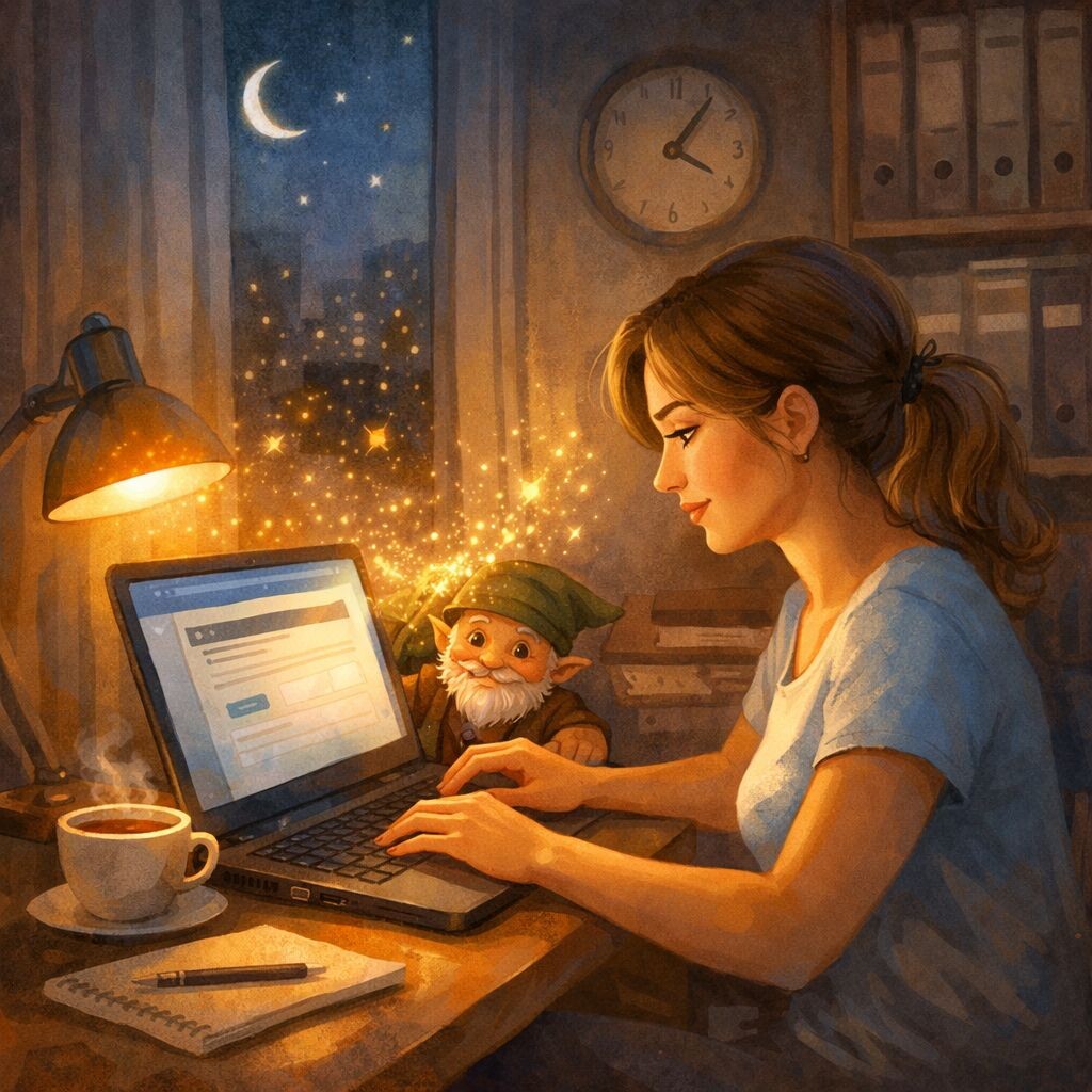 Думаете, в сказках так не бывает? Ещё как бывает! Заглянем в закулисье нашей сказки. Был один день, когда Лерия почти сдалась. Работы навалилось — «выше крыши». Учёба не шла. Казалось, что она живёт в двух мирах — и ни в одном не чувствует себя своей. Вечером она закрыла ноутбук и тихо сказала: — Может, это не моё… И тут на стол упала скрепка. Сама. Лерия улыбнулась. — Ладно, Офисничок, я поняла. Она снова открыла ноутбук. Не из потому что кто-то потребовал . А из упрямой веры, что её место где-то в этом направлении. Иногда переломный момент — это не фейерверк. Это просто решение не сдаваться в день, когда особенно тяжело. И вот однажды Лерия вышла из того самого офиса. Но не убегая. А спокойно. С благодарностью. Потому что этот офис научил её главному: ценить своё «живое Я». Теперь её дни были другими. В них было больше смысла,больше свободы, больше настоящей её. И знаете, что самое удивительное? Офисничок не исчез. Он просто перебрался в её новый кабинет. Сел на полку с книг