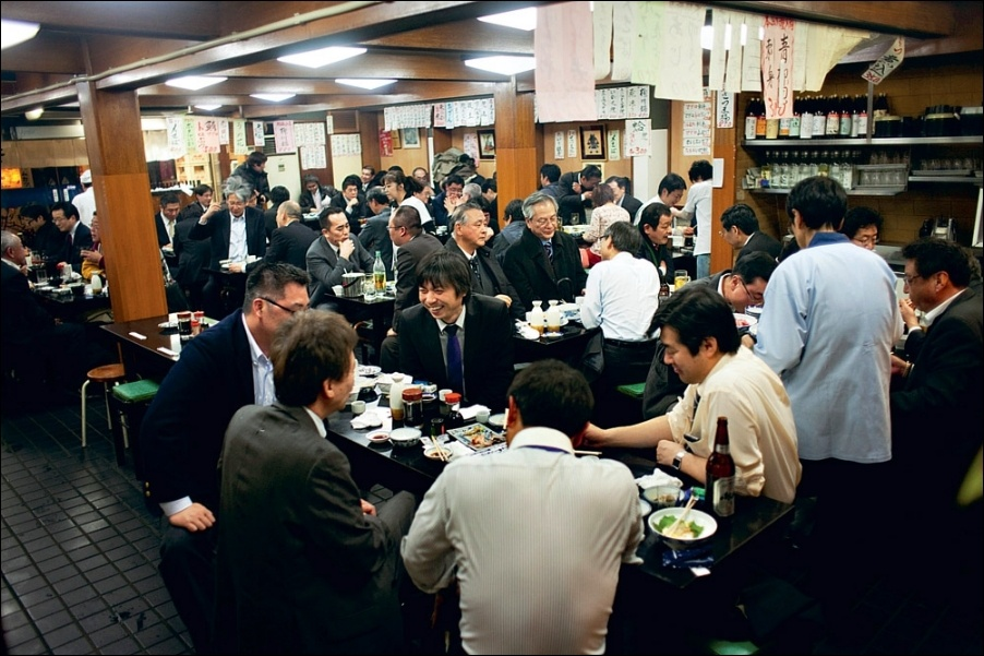Японцы искренне преданы своей работе и организации. Задерживаться на службе до поздней ночи — в порядке вещей . В японском языке даже существует слово 過労死 (Karōshi) — "смерть от переутомления", и с этим диагнозом ежегодно умирает около 10 000 человек .