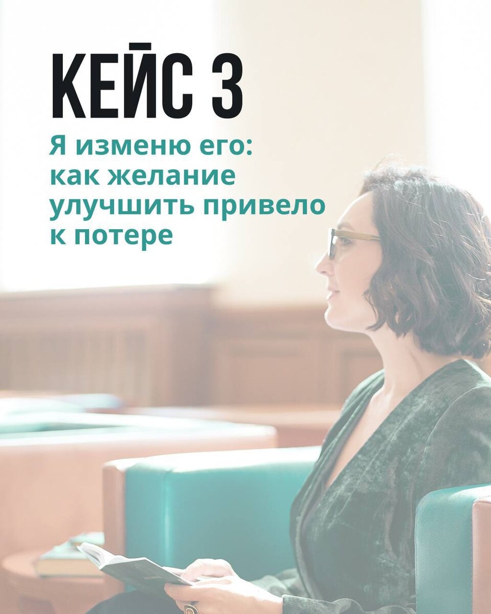 : «Я его ненавижу, живу с ним и ненавижу внутри. Он мне всю жизнь испортил. Мы сидели напротив друг друга и разговаривали про их отношения, проблемы, невозможности и желание развестись. – Может быть, моя ненависть и вечные придирки – это способы стимулировать тебя!? Хоть так получать твои эмоции и энергию, которые я люблю, – сказала Ольга. – Может, мне скучно с тобой постным, неярким, лежащим? Потом она поправила идеально уложенные волосы и обратилась ко мне: – Я хочу добиться от него реализации его зачатков. То, что я увидела в нем при нашем знакомстве. Валентина, у него есть потенциал! – А они точно были или вы их себе придумали, чтобы выйти замуж? И если предположить, что вы ему их приписали? И нет никакого потенциала? Нет данных? Он просто вот такой, какой есть, и всё, и ничего больше? Что тогда? Как вам с этим? – Не знаю, я не думала так, – ответила она. – Вот, видите, как она смотрит на меня, – сказал Павел. – Но я – это я, я такой. Делаю, когда хочу; когда не хочу – не де