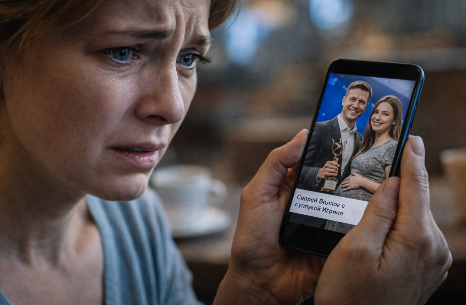 Лариса увидела фотографию случайно, листая новостную ленту в телефоне, когда ждала заказ в кафе. Снимок с городской премии «Лучший предприниматель года». Её муж Сергей на сцене, улыбался в камеру, держа награду. А рядом была молодая беременная женщина. Подпись под фото: «Сергей Волков с супругой Ириной».