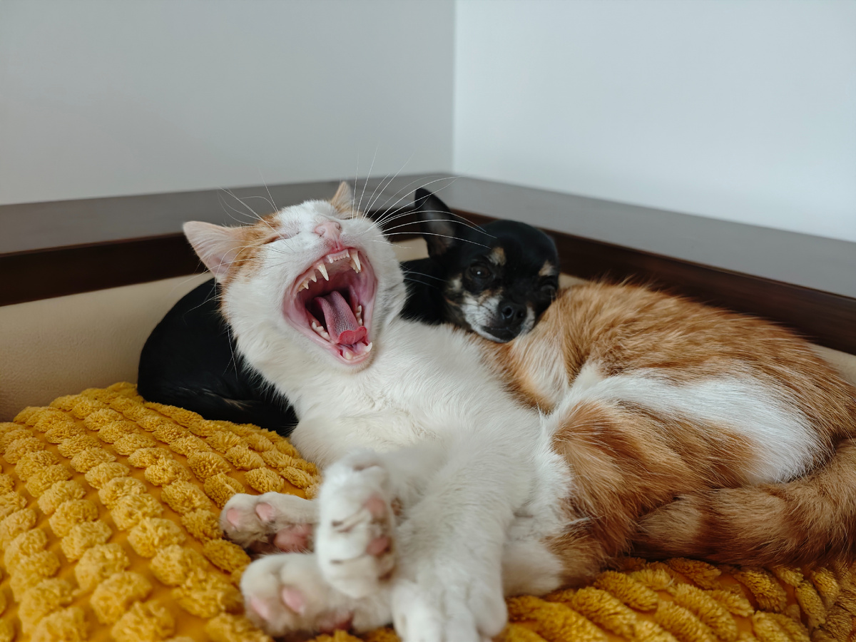 Высыпаю траву и первой на кучу взбирается своевольная Клава, яростно раскидывая ее в разные стороны в поиске вкусняшек.