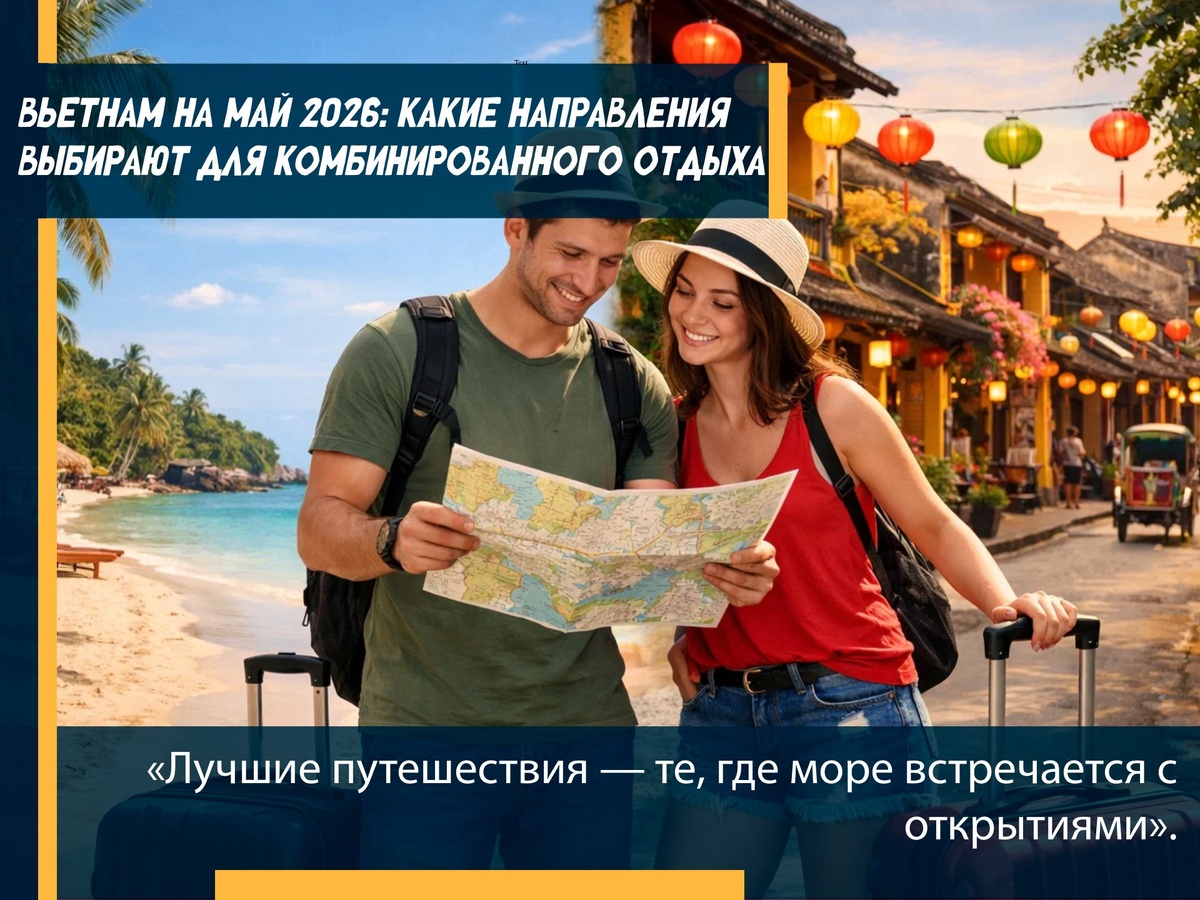 ✅ Май 2026 во Вьетнаме — идеальное время для комбинированного отдыха: пляж + экскурсии в одном туре. ✅ Самый популярный формат — Фукуок + Хошимин: сначала белоснежные пляжи и тёплое море, затем динамичный город, рынки и колониальная архитектура. ✅ Второй тренд — Нячанг + Далат: океан и острова сменяются горным климатом, кофейными плантациями и прохладой. ✅ Для ценителей природы — Дананг + Хойан: пляжи, древний город фонарей и знаменитый Золотой мост. ✅ Май остаётся выгодным месяцем: до начала сезона дождей цены ниже, а спрос уже растёт. Лучшие отели и перелёты бронируют заранее — за 2–3 месяца. Комбинированный тур — это два впечатления в одной поездке. Вьетнам в мае 2026 — шанс совместить релакс у океана и яркие открытия без переплат и суеты. Экзотик Тур | поиск туров→ http://ekzotic.club