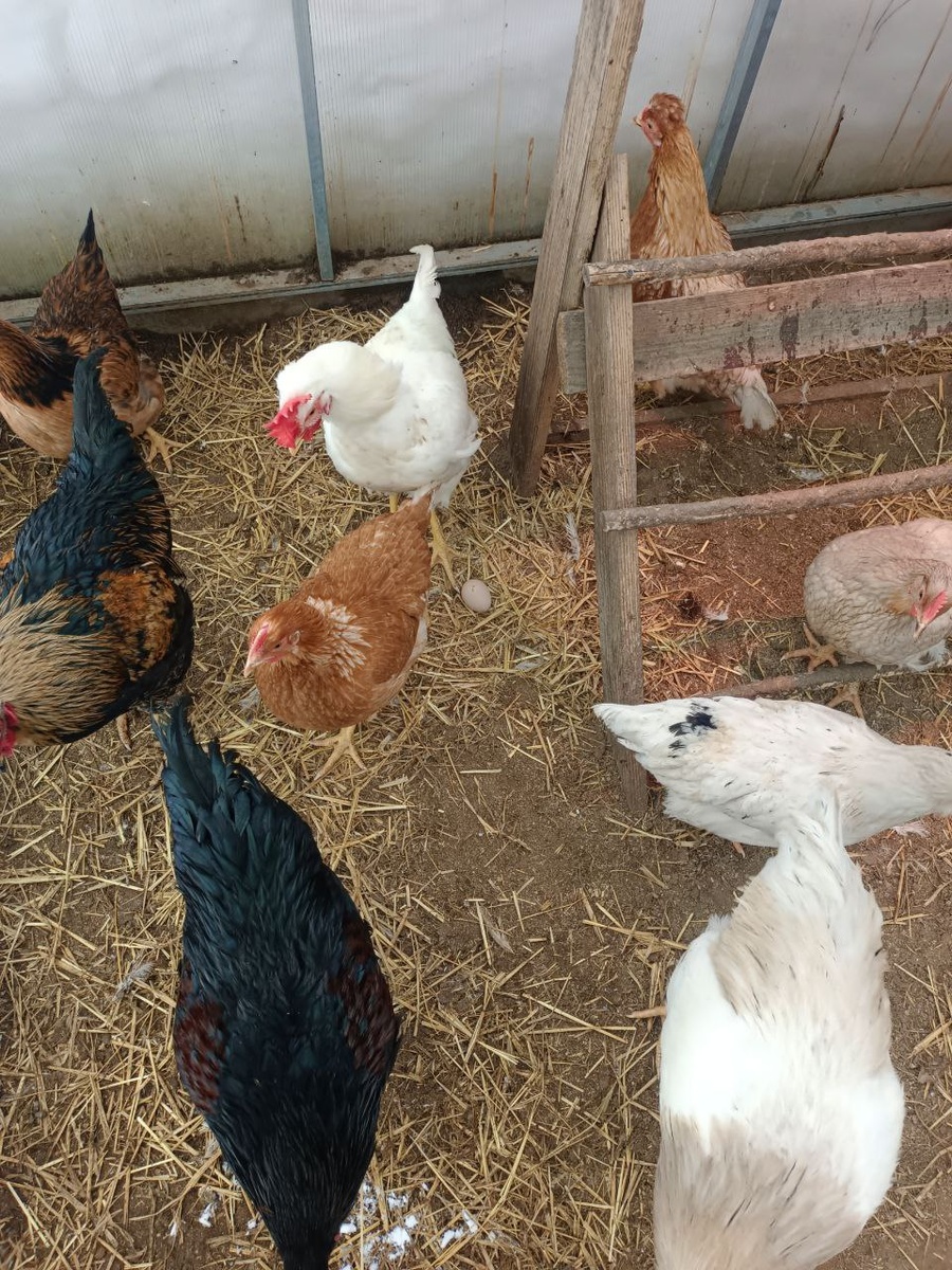 Они вылупились 18-19 октября, и вот уж на пятый месяц курочки начинают своё дело. Теперь и им нужно гнездо соорудить, только доступа к инструменту и материалам у меня пока ещё нет. Не раскопал от снега дорожку туда.