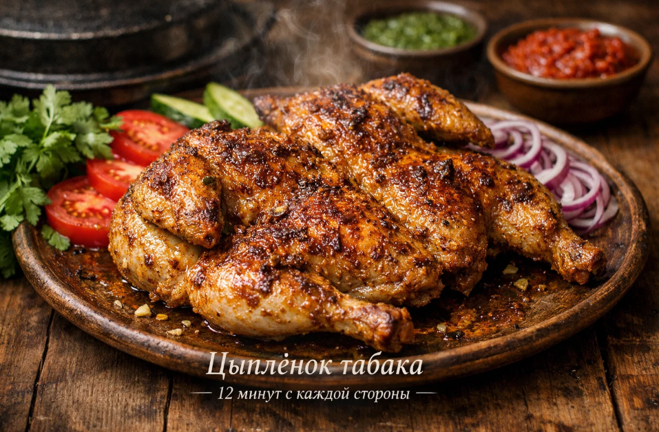 Когда заходит разговор о грузинской кухне, большинство людей сразу вспоминают хинкали, хачапури и ароматные соусы. Однако есть одно блюдо, которое заслуживает особого внимания и по праву считается настоящей жемчужиной кавказской кулинарии. Речь идёт о цыплёнке табака, который готовится под прессом из чугунной сковороды ровно двенадцать минут с каждой стороны. Это блюдо покорило сердца гурманов далеко за пределами Грузии и стало неотъемлемой частью застолий в разных уголках мира.