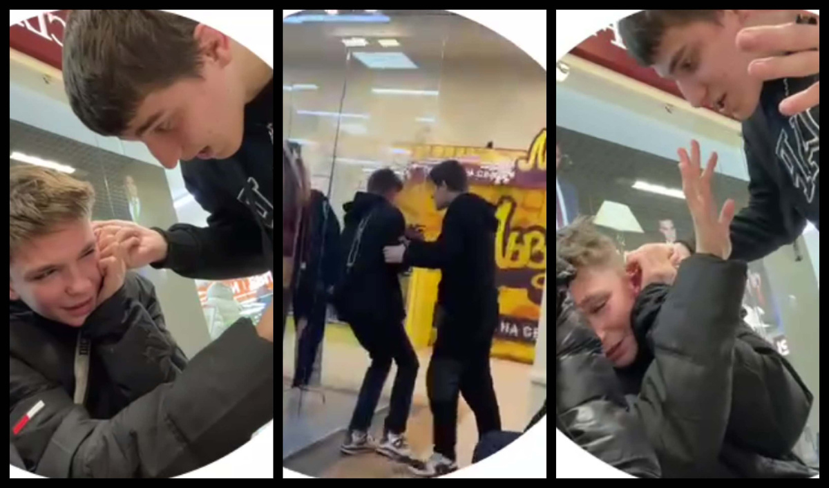 Иностранец в торговом центре донимает одного за другим русских ребят и нет на него управы: "Ну пусти ухо"