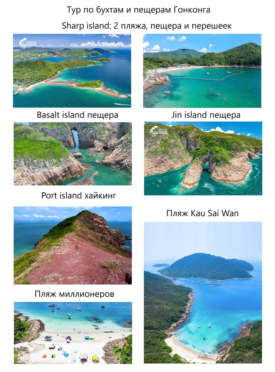 Тур по бухтам и пещерам Гонконга Экскурсия в Гонконге Мы увидим лучшие локации Гонконга: Остров Шарп с 2 пляжами, пещерой. Высадка на перешейке Пещера у острова Базальт Пещера у острова Цзин Хайкинг на острове Порт Пляж миллионеров или пляж Кау Сай Ван. 4 часа на катере (сборная группа) = 5800 HKD + такси + лодка 500 HKD с человека. Например, за 2х=7800 HKD, 3х=8300, 4x=8700HKD 4 часа на катере (только для нас) = 5800 HKD + такси + лодка 8000 HKD (свободная программа, можно + снорклинг, САП доски) 8 часов на яхте (только для нас) = 5800 HKD + яхта 14990 HKD (больше локаций). Без кейтеринга. За доп.плату водная горка, маты, бассейн, удочки. Заходите на мои ресурсы про Гонконг www.hongkong.su www.hong-kong.su www.hongkonglife.ru www.tours.hong-kong.su www.vistavki.hongkong.su www.helicopter.hongkong.su www.yachts.hongkong.su www.transfer.hongkong.su vk.com/hongkong_su facebook.com/hongkongsu dzen.ru/hongkong t.me/hongkong_su Instagram.com/hongkong_su www.business-club.hongkong.su www.hk-