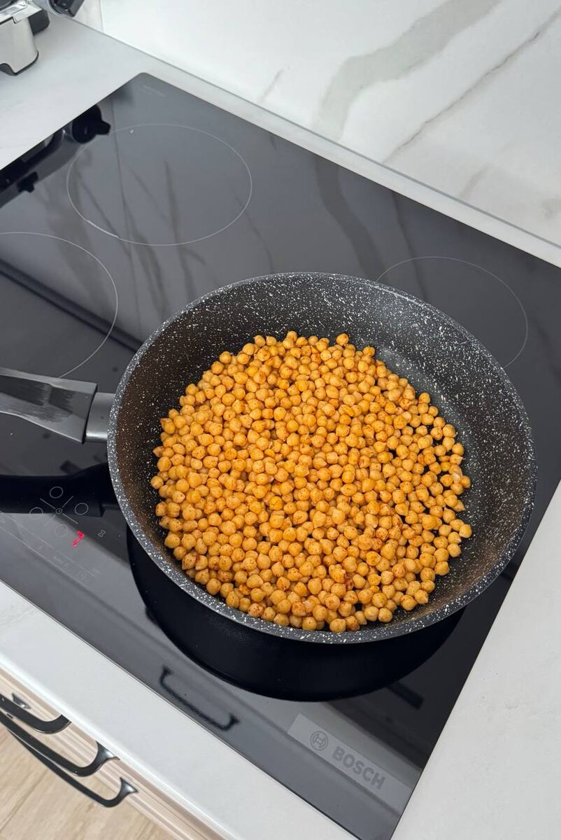 Он почти всегда у меня есть в заготовке. Я добавляю его в салаты, в суп и просто могу ложкой есть без всего. Замачиваю на ночь. Промываю и отвариваю до готовности в соленой воде. Поджариваю на небольшом количестве масла гхи со специями и всё. А вот хумус вообще не моё.