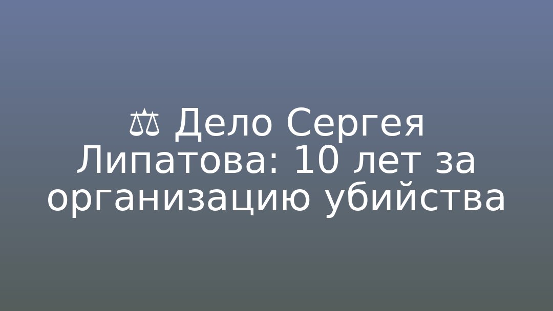 , совершённому организованной группой, и приговорил его к 10 годам лишения свободы. Речь об убийстве в 2002 году советника министра путей сообщения, директора «Инюрконсалта» Игоря Фоминова. Обвинение запрашивало 12 лет. Липатов признал вину, извинился перед родственниками и перечислил 1 млн руб. в счёт компенсации морального вреда.