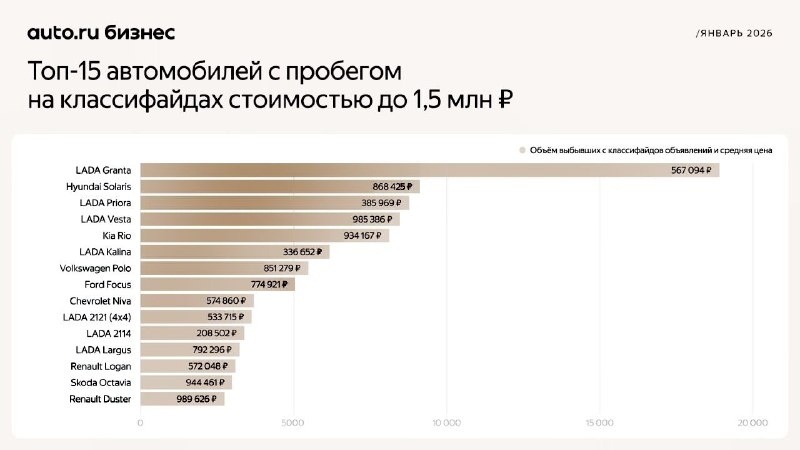 📊 Свежая аналитика от Авто.ру Бизнес — какие автомобили с пробегом быстрее всего «уходили» с классифайдов в январе 2026. Фактически — что рынок реально покупает. Без сюрпризов.