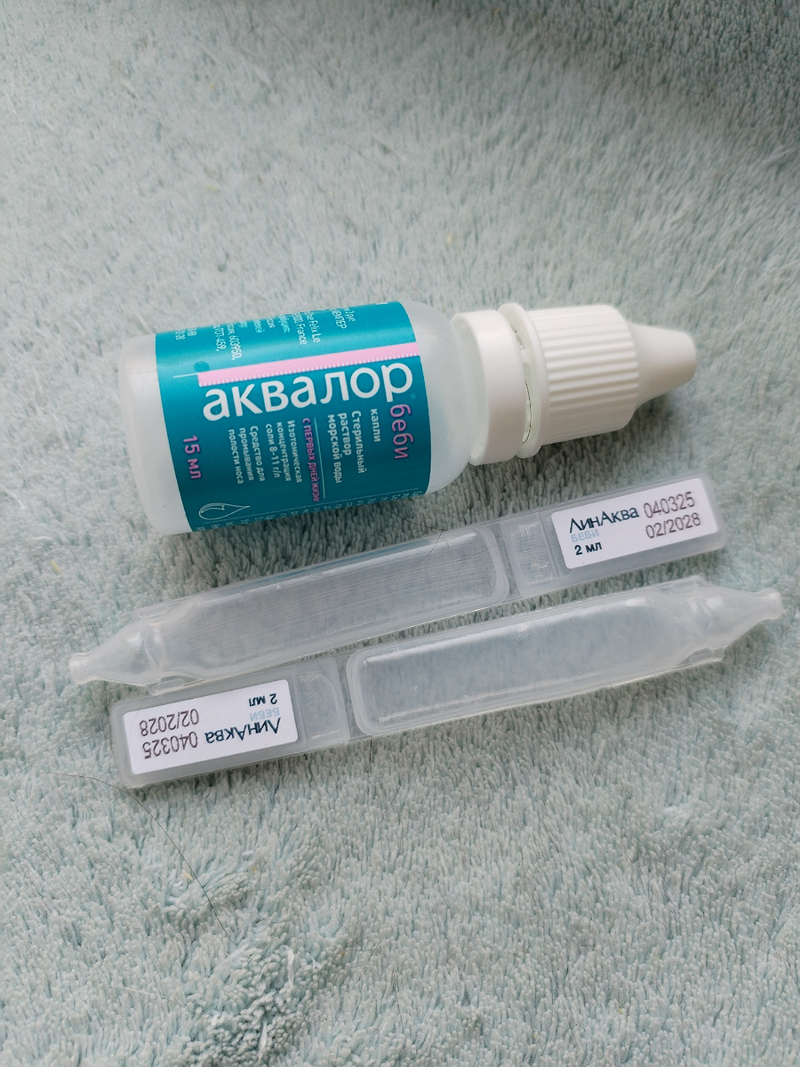 Аквалор слишком быстро у нас закончился, поэтому нам больше по душе ЛинАква. Его много и мы его капаем как в нос, так и в рот