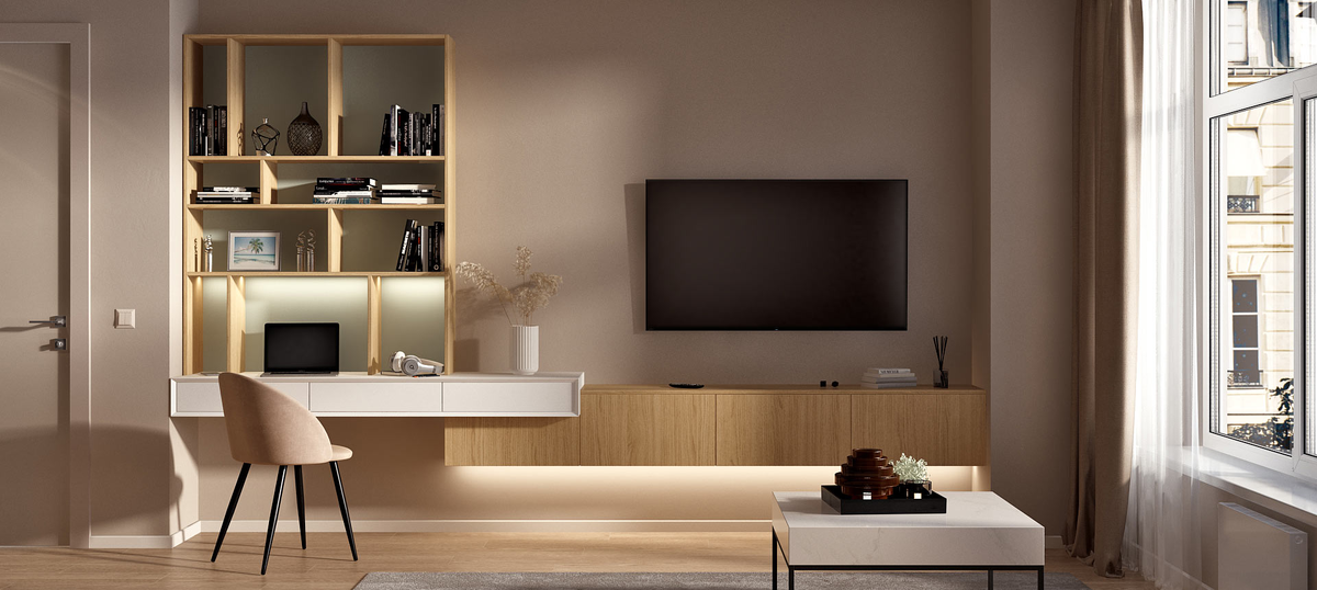 - Стенки. Модульная или корпусная мебель для хранения. Стенки — набор шкафов, тумб и полок, которые можно расположить в произвольном порядке. Обычно такую мебель ставят вдоль одной или двух стен комнаты. Стенки объединяют в себе функции шкафов для хранения, витрин, столов под телевизор.