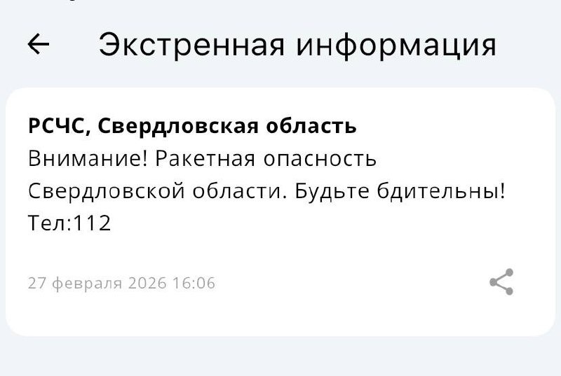 ! Об этом сообщили в региональном МЧС и разослали экстренные оповещения. В Екатеринбурге прозвучали сирены и объявления дежурного диспетчера. 📨 Присылайте свои новости в наш бот – @mbnews_bot @era_u 4️⃣4️⃣