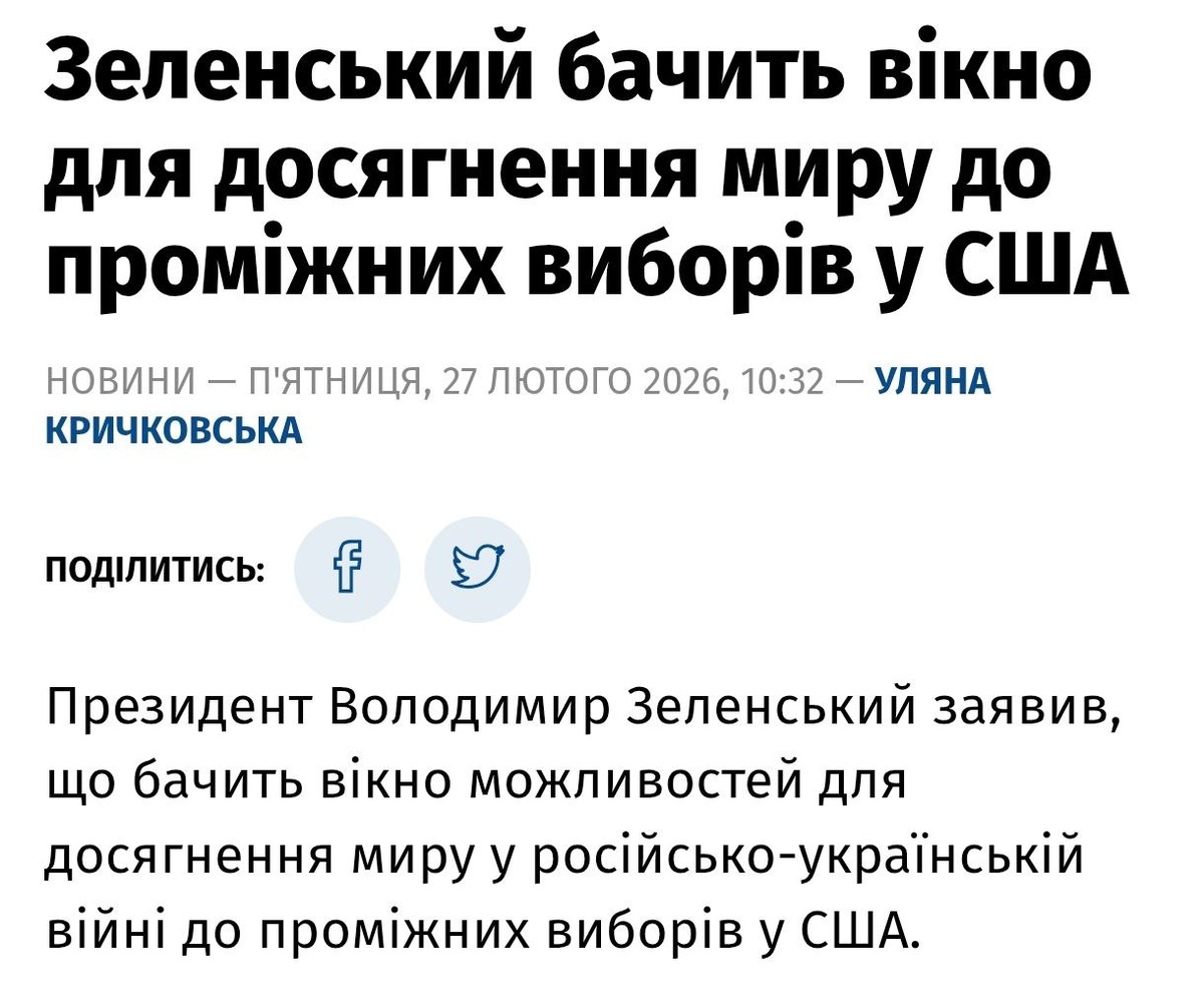 — «Мир может наступить к осени, когда в США будут промежуточные выборы», — просроченный президент Украины