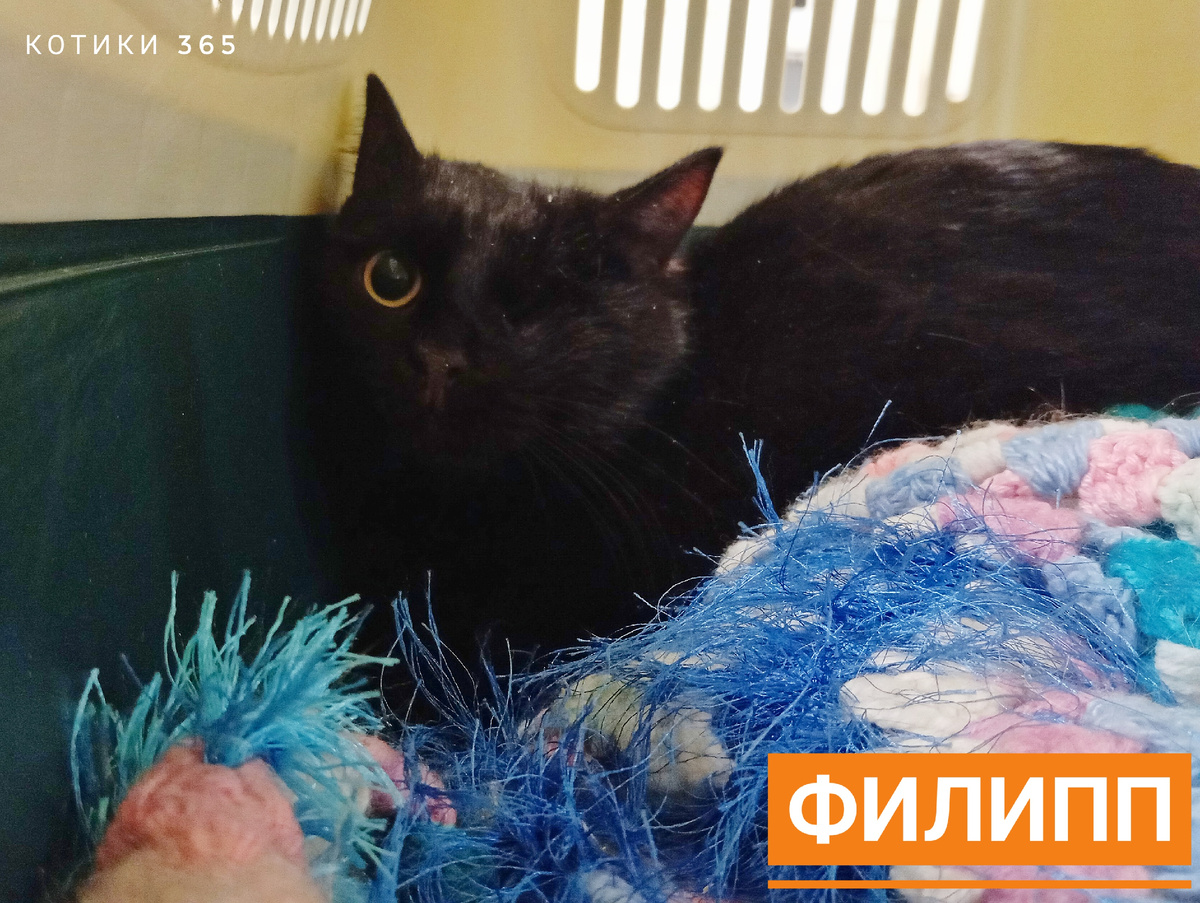 Филипп крупный, добрый и безобидный котик. Но жутко боится переносок. Даже на Успокоине, в четыре руки, еле смогли посадить его в переноску. По дороге весь укутался в плед, так что на приёме не сразу нашли где него голова и