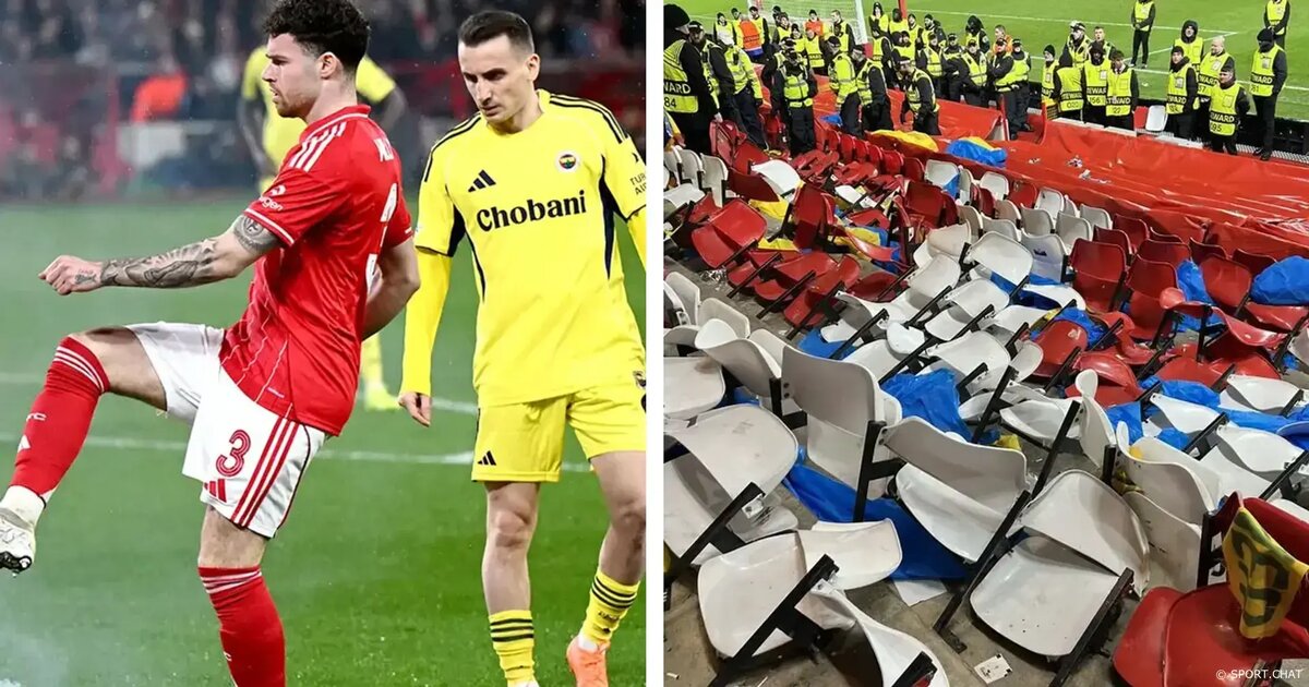 Скандал на «Сити Граунд»: фанаты «Ноттингем Форест» спровоцировали «Фенербахче», гости разгромили сектор.Видео.