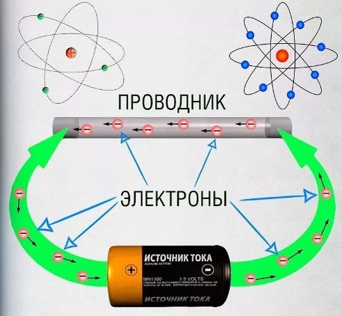 Б. Г. - Простите, но природа электрического тока двойственна! По проводнику, при замыкании цепи, навстречу друг другу от источника идут два потока – электронов левого спина и навстречу – электронов правого спина (лэлеки и пэлеки, левые и правые электроны). Но вихревое магнитное поле вокруг проводника получается одного направления, потому что спины лэлеков и пэлеков, идущих навстречу друг другу, оказываются одного направления. При переменном электрическом токе спины лэлеков и пэлеков периодически поперечно переворачиваются на 180 градусов, а вокруг проводника генерируется переменное вихревое магнитное поле. Надо кончать с ужасным заблуждением о том, что разность потенциалов на источнике тока – это избыток отрицательных электронов на одной клемме и недостаток отрицательных электронов – на другой клемме! И там и там мы имеем дело с электронами, с давлением электронов, но с противоположными спинами вращения.