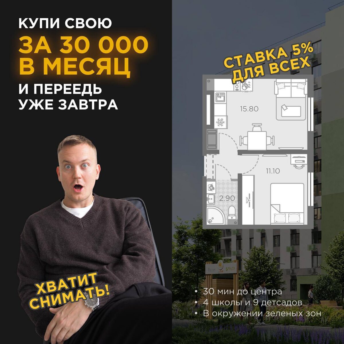 🚨 Считаем на пальцах: → 1 000 ₽ — это чашка кофе и булочка в сетевой кофейне. → 30 000 ₽ — это средний платеж за аренду чужой «бабушкиной» квартиры. → 1 000 ₽ в день — и вы собственник своей 2-евро с отделкой, где можно завести кота и вешать полки где угодно. В чем подвох? Его нет. В 2026 году застройщики создали схемы, которые работают для ВСЕХ (без льгот, детей и IT-работ). Все подобные «аномальные» предложения собирает Николай Еськов в своем канале Что еще там есть: ▪️Платите 10 000 Р/мес и живите в лофте у озера ▪️Готовая 2-евро за 20 000 Р/мес для всех ▪️9 500 Р/мес за любую квартиру до конца стройки 🎁 Забирай подарок: Подпишись на канал и забирай в закрепе гайд по семейной ипотеке 2026г.