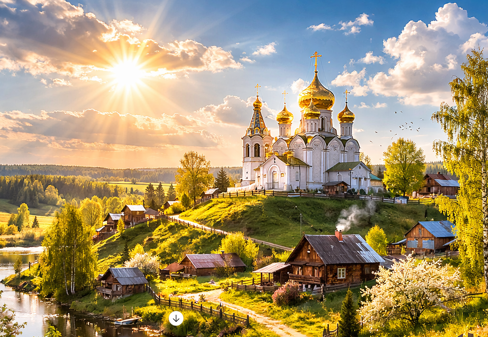 Наташа смотрела на Берёзовку на горочке, ей было отчего -то так радостно…На секунду промелькнуло какое-то видение, будто с правой стороны стоит, сверкая и переливаясь ярко -жёлтыми куполами церковь…