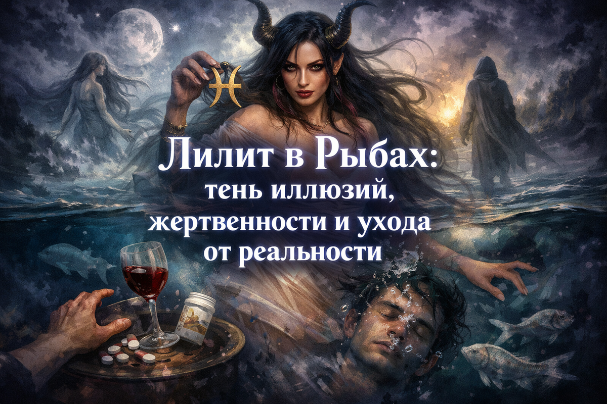 Лилит в Рыбах: тень иллюзий, жертвенности и ухода от реальности