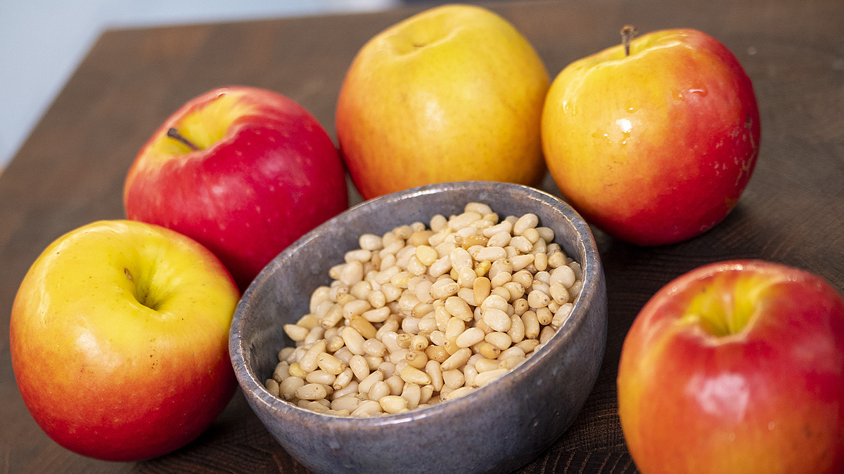 • Яблоки — 5 шт • Кедровые орехи (или грецкие/кешью) — 50 г • Сахар — 3 ст. л. (или больше, если яблоки кислые) • Сливочное масло — 60 г • Лимон — маленький кусочек • Лаванда — 1 маленькая веточка • Чай (или вода) — 50–70 мл • Шафран — несколько ниточек • Соль — щепотка В миску с водой + 1 ч. л. сахара + лимонный сок — положить очищенные яблоки, чтобы не потемнели. На сковороде растопить 30 г масла + 3 ст. л. сахара → карамелизовать. Яблоки нарезать крупно (без сердцевины) → на сковороду. Присолить, сбрызнуть лимоном (по желанию + корица). Добавить лаванду + обжаренные кедровые орешки. Влить 50–70 мл чая + шафран → тушить 2–3 минуты. Переложить в блендер + 30 г сливочного масла → пробить до гладкого пюре. Готово! Переложить в баночку, в холодильник. Исчезает за день и приятного аппетита!