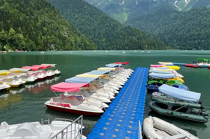 - Прибыв на Рицу, наслаждаемся видами и красотами местных окрестностей, и совершаем прогулку на плоту «Альбатрос» по водной глади озера. Вам откроются дивной красоты пейзажи смешанных лесов и заснеженных, величественных отрогов кавказа.