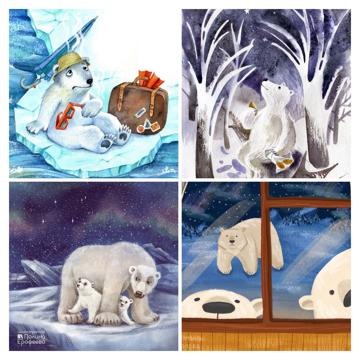 Несмотря на то, что белые медведи - это самые крупные наземные хищники, они тоже нуждаются в защите, как и всё живое на нашей планете. Именно поэтому ежегодно 27 февраля отмечается МЕЖДУНАРОДНЫЙ ДЕНЬ БЕЛОГО МЕДВЕДЯ. В честь праздника мы подготовили для вас не только подборку иллюстраций, но и несколько интересных фактов об этом удивительном звере: ❄ Это единственный вид сухопутных млекопитающих, приспособившийся к жизни на морских льдах. Именно поэтому на латыни белый медведь называется «Ursus maritimus», что означает «медведь морской». ❄ На самом деле шерсть полярных медведей не белая, а прозрачная, она не содержит никакого пигмента. Все шерстинки внутри полые, внутри них находится воздух, который помогает удерживать тепло. При этом солнечные лучи легко проникают через такой мех и нагревают кожу. Иллюзия белого цвета создаётся за счёт многократного отражения света от прозрачных волосков. ❄ На передних лапах у белых медведей есть плавательные перепонки, которые помогают им очень быстро