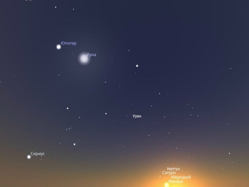 - Две планеты из шести (Уран и Нептун) увидеть невооружённым глазом невозможно. Разве что Уран на идеальном небе чисто теоретически разглядеть можно. Из оставшихся 4 планет 3 собраны сейчас около Солнца – это Венера, Меркурий и Сатурн, - объясняют астрономы. - Чтобы найти их, потребуется иметь чистый горизонт и далее ловить заход Солнца. По факту, скорее всего, вы увидите только одну точку (Венеру) или 2 точки (Венеру и Сатурн). Меркурий увидеть не получится.