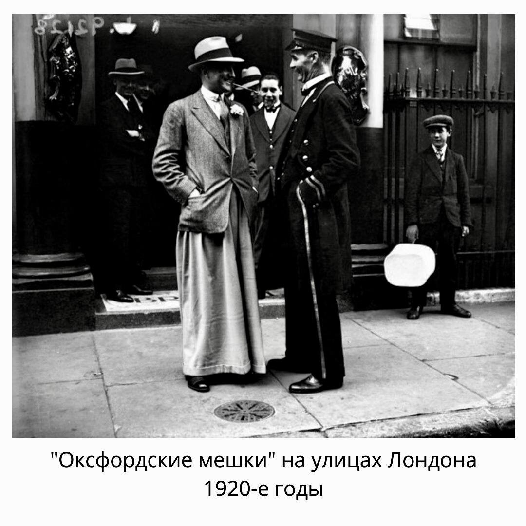 В середине 20-х годов прошлого века (для олдов напоминаю, что прошлым сейчас считается двадцатый, а не девятнадцатый век) американские студенты, проводившие каникулы в Англии, увидели на своих оксфордских и кембриджских ровесниках широченные брюки-«мешки». Пишут, что под этими мегаштанами студенты-бунтари скрывали модные тогда бриджи, которые были запрещены к ношению в аудиториях консервативных университетов.