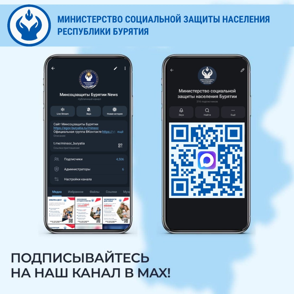 ❗️ Информация о важных событиях региона, мерах социальной поддержки и истории жителей Бурятии теперь доступны в MAX. 🔔 Подпишитесь, чтобы всегда и везде быть в курсе актуальных новостей Минсоцзащиты Бурятии!