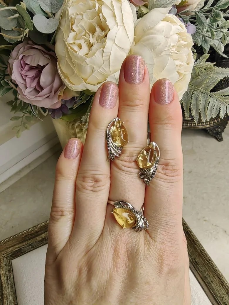 Серебро 925 проба, натуральный янтарь, марказиты.